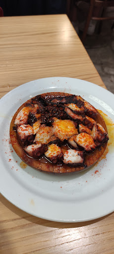 We ordered 1 portion of octopus and 1 costillitas. The octopus was not good and the lady exchanged it for some fried squid that sadly was better but still mediocre. The ribs (costillitas) were flavourless and a bit dry. Same with the wine, no flavour whatsoever. Prices not in line with the quality, ribs were 15.50 and the squid 11. For normal portion and below average quality it's a bit too much. They were kind enough to not charge us with the pulp so the service is on point, very friendly. But unfortunately not a really good experience.