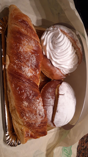 Read moreLa pastelería está muy bien ,los pasteles y cafés,como todos sus demás productos estan muy bien elaborados y están riquísimos...yo lo único que cambiaría sería a las que despachan,no atienden bien ,tardan un montón y muchas veces están sin hacer nada y no atienden ...para ser más claros está mañana fui por un croissant, y había 3 chicas detrás de la barra ,una de ellas con el móvil ,las otras 2 hablando con un chico en la barra...Entro y ni caso,varias veces dije" Hola" y ni me contestaron , entró detrás de mí una señora y una de ellas le preguntó que quería, y estaba detrás de mí, yo flipando!!!...Eh? Que estoy aquí ,Soy invisible!!! Después de 5 minutos y decir varias veces si era invisible ,una se digno a saludarme,pero por que salía y se dirigía al baño..Al final me fui sin comprar y con la intención de no volver..aunque me da pena porque el dueño es muy buena persona y los pasteles...