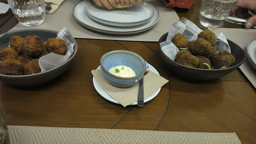 Llegamos a las 14.30 con reserva previa. Desde el primer momento el trato fue excelente. El camarero nos explicó de forma detallada que platos tenían fuera de carta. Una vez decidido nos aconsejó sobre nuestra elección y la verdad que muy bien. En primer lugar comimos los tacos de cochinita pibil y la verdad que estaban deliciosos. Nada picantes y super sabrosos y fresquitos a pesar de ser un plato caliente. Luego los espaguetis con pulpo, langostinos, mejillones… la verdad que fue mi plato favorito. Tenia un sabor super intenso y se notaban todos los matices, la verdad que me encantó. Por ultimo la croca. Estaba al punto y se cortaba super suave, muy sabrosa también acompañada de patatas y una salsa muy buena. De postre tomamos una copa de mousse de queso con frutos rojos y oreo. Nos arrepentimos de no pedir 10 de estos por que la verdad estaba delicioso. Por último el café muy rico también con la leche bien cremada. En definitiva todo un 10/10. Es un local al que vas sabiendo que la calidad del producto es excelente sin ir buscando tanto un precio ajustado. Aqui vienes para disfrutar de la comida. 2 personas (60€). Trato de 10, comida de 10 y el...