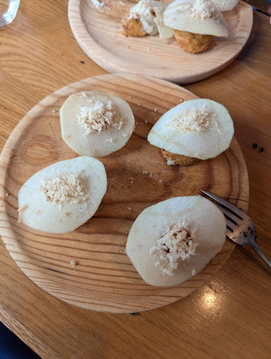 Read moreWe've been on the Camino for several days now, and our lunch today was probably the most interesting and special so far. Cuttlefish empanada, with a black crust from the ink in delightful contrast to the white sauce. This was my first cuttlefish experience (it needs to make the same branding change as prunes or Patagonian tooth fish, but I digress). The croquettes were crispy on the outside with a delicate galcian blue cheese filling with a thin apple slice on top. Super friendly service. Highly...