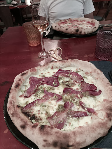 Comenzamos con una tabla de quesos que fue todo un acierto, con una cuidada selección de sabores italianos que combinaban perfectamente entre sí. Luego, la estrella de la mesa fue sin duda la pizza pistachosa: una mezcla única y deliciosa, con masa fina y crujiente, un sabor que se sale de lo común, ideal para quienes buscan algo diferente. También probamos la pasta amalfitana, perfectamente cocida al dente y con una salsa intensa y fresca, que te transporta directamente a la costa italiana.