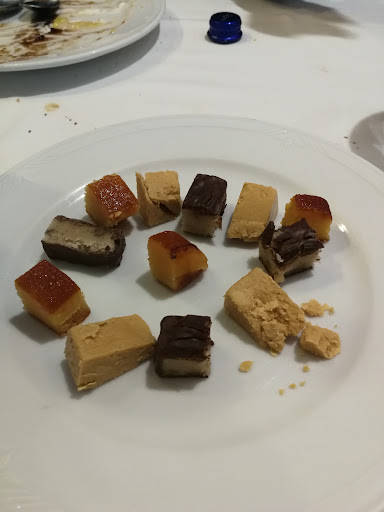 El retaurant està situat (creiem) i ambientat en un antic teatre que et trasporta a èpoques passades, però veníen a sopar, així que a més de l’ambientació el realment important és el menjar. Vàrem fer tapes, no teníen totes les que hi havia a la carta, però les que vàrem tastar molt correctes, molt bones, però voldria fer una menció especial a un plat (no tapa) fora de carta i que espero que l’incloguin perquè era simplement espectacular, uns daus de tonyina a sobre d’un llit de guacamole i carpaccio de tomàquet amb “nachos” de blat de moro (mireu la foto), brutal menjar-ho tot plegat, res resta, tot suma fent un plat rodó tant en sabors com en textures.