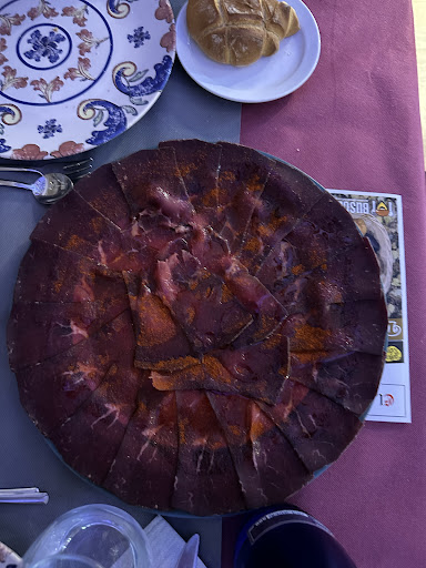 Bellissima sorpresa nel borgo fortificato di Portillo (Valladolid) dove, volendo restate fuori dal traffico del capoluogo castigliano, abbiamo trovato alloggio in un autentico Hotel Rural al quale è connesso questo ristorante. Siamo stati accolti da Alberto che ci ha aiutati nella scelta dei piatti della tradizione e la sera successiva, su nostra richiesta, a farci preparare il vero Cordero Lechazo Asado, indiscusso protagonista della gastronomia castigliana. Una vera delizia che non abbiamo mancato di innaffiare con del robusto vino tinto della Ribera del Duero (14,5 gradi alcolici), altra eccellenza della Castilla y Leon. Una esperienza enogastronomica concreta, senza fronzoli e, come tale, davvero eccellente almeno quanto la genuina e generosa accoglienza che ci è stata riservata, sottolineata a fine pasto con un chopito di grappa alla ciliegia "casera"! Il conto, al termine di questa escursione tra i sapori più autentici della terra di Don Quijote, nient'affatto salato, anzi! Se passate dalle parti di Valladolid, non mancate di avventurarvi tra le stradine di Portillo, e non lontano dal suo fiero Castillo, cercate questo ristorante, ospitato all'interno di una vecchia chiesta (con tanto di nido di cicogne nella torre campanaria) e vedrete che la fatica che avrete fatta per trovarlo sarà ripagata... e dite pure ad Alberto che vi...