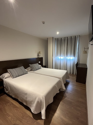 En ple juliol, en el meu viatge del Camí de Santiago, vaig tenir la gran sort d'allotjar-me en aquest hotel. Vaig arribar avançada la tarda, perquè l'etapa havia estat dura, però no vaig tenir cap problema a l'hora d'efectuar el check-in, els seus propietaris m'esperaven, i la veritat que van estar summament amables, vàrem mantindre una llarga i agradable conversa, i això que teòricament era el seu horari de descans, després em van acompanyar a guardar la meva e-bike, la qual va quedar en molt bon resguard, en un magatzem, bugaderia, que posseeixen just en sortir de l'hotel, també la vaig poder carregar allí mateix sense cap problema. L'habitació estava fenomenal, àmplia, neta, ben distribuïda, no li faltava de res, amb unes vistes excepcionals, és una meravella d'habitació, tens tot el que necessites. L'endemà vaig esmorzar molt bé, ben atès per la cambrera de l'hotel, la qual també va estar molt amable i cordial, no va haver-hi cap problema ni pressa a deixar l'habitació, ressalto el tracte excepcional molt familiar que vaig rebre, tant dels seus propietaris com del personal de l'hotel, sens dubte el recomano, és més, estic segur que tornaré, això sí, més d'un dia.