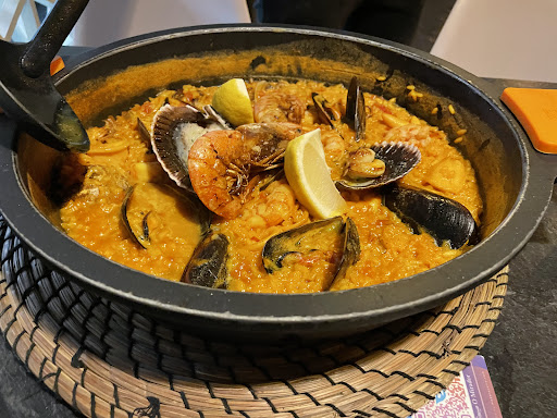 The decor is reminiscent of a Hard Rock Cafe with a Spanish touch.