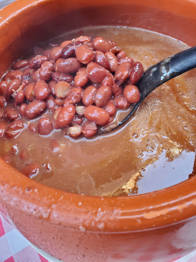 En mi última visita optamos por este último, y fue fenomenal. Nos sacaron una cazuela de barro con alubias (riquísimas y muy abundantes), unas piparras (guindillas verdes), una hermosa ensalada mixta (con bonito, lechufa, aceitunas, tomate, espárragos y huevo duro), una fuente con todos los 'sacramentos' (costilla, chorizo, morcilla, tocino,...), más pan, agua, vino (cosechero de Rioja) y postre (delicioso arroz con leche, flan de queso, helado o pastel de chocolate). Todo ello por 18 euros.