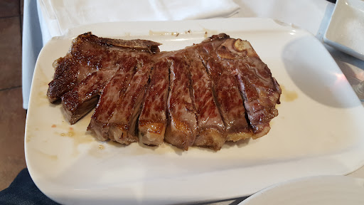 Añado imágenes de la carne. Pedimos expresamente tres txuletas MUY pocos hechas por favor y una al punto. Nos sacaron tres al punto y una pasada muy finas. Al quejarnos, nos sacaron una txuleta que no tenia nada que ver con la anterior, la segunda mediría sobre unos 2 cm de ancha y la primera no llegaba a uno.
