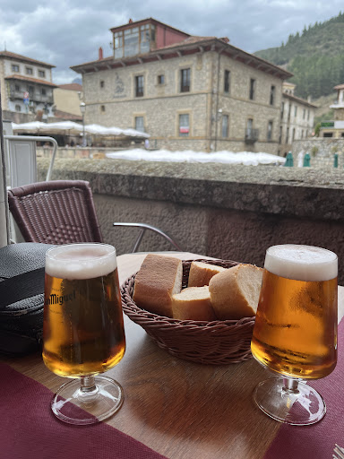 Our waiter was clearly a trainee but when we started making off menu requests in our very poor Spanish, he conferred with the boss and all our wishes were granted. They moved tables so we had more space, they served us a really good paella. The pizza was "interesting" but tasty nonetheless. They really went out of their way for us. As you look down from the bridge this is the terrace on the right of the river. The house wine wasn't to our taste so we asked to change it, which they did, without a problem and...