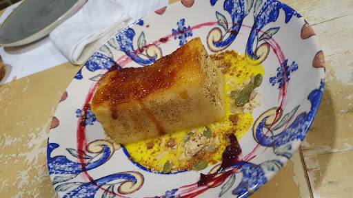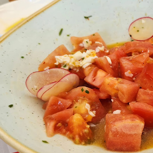 Supera con creces las expectativas, cocina muy moderna que combina los ingredientes de la zona con elaboraciones más trabajadas. La información sobre alérgenos está visible y es clara. Lugar moderno con una decoración muy vanguardista y original. Combina ciertos elementos vintage con otros creados y acordes al tipo de restaurante. Lugar muy accesible, preparado en toda su amplitud para la discapacidad motriz y para acudir con niños de todas las edades. Todo estaba muy limpio y los espacios estaban cuidados al detalle. Precios populares. El vino buenísimo, incluso el de la casa. Los tres platos que probamos estaban riquísimos. Atendiendo a las sugerencias del camarero comimos realmente bien. Lugar que se diferencia por sus espacios sencillos y elegantes y con pequeños detalles que marcan la diferencia con respecto a otros similares en la zona. Lo único regular y tampoco es una queja, es que te ofrecen el pan que después se cobra en la cuenta, no doy las 5 estrellas justo por eso. Además el precio viene desglosado por comensal y es realmente interesante el planteamiento, facilita la visita de grupos. Disponen de una amplio salón comedor donde disfrutar con tranquilidad de su cocina elaborada con mimo. Lugar aconsejable tanto para "tapear" algo como para cenar o comer. Su carta está elaborada con mucha simpatía y gracia. El servicio es muy amable, educado, simpático y profesional. Tienen el detalle de explicarte la composición del plato y me parece algo muy original y que le aporta la diferencia y elegancia que otros no tienen. Me ha encantado, en general ha sido una experiencia gastronómica y visual muy interesante y que aconsejo a quien tenga la...