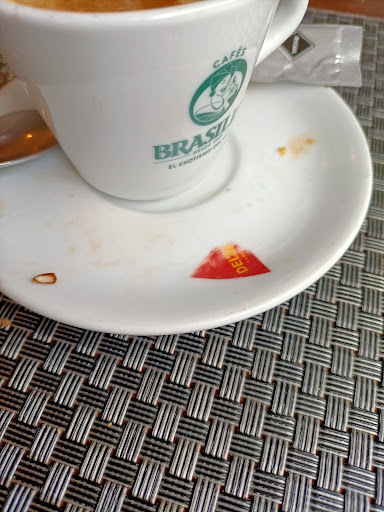 Pides los cafés y te traen los cafés con platos usados y sin limpiar como veis en la foto, aparte de no saber bueno sabe a quemado y raro