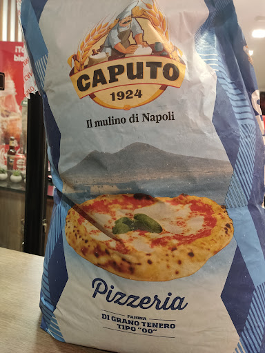 Al fondo se puede apreciar un gran horno que incluso procede de Italia, y todos los productos que tienes para comer y beber son italianos, como por ejemplo mozzarela, harína italiana , incluso la cerveza peroni.
