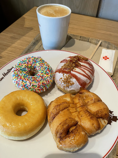 Read moreLa única cafetería de esta cadena Canadiense de café y donuts por la zona noroeste, todas las demás ubicaciones se encuentran en Madrid. Que puedes esperar? Café estilo americano, y si lo pides expresamente también tienen lattes, hecho con espresso me refiero, pero el café de la casa es estilo americano, más aguado y menos intenso para el que le guste. Los donuts son muy ricos, siempre tiernos y sabrosos, también los dots que son bolitas de masa de donut con relleno, aunque los hay sencillos sin relleno. Han añadido varias cosas al menú para poder comer salado, como sándwiches de jamón y queso a la plancha y bocadillos de jamón serrano y de pavo y tomate y lechuga si recuerdo bien. Creo que es un sitio con una variedad adecuada y sobre todo tranquilo, un buen sitio para charlar, con asientos cómodos y buen ambiente, sobre todo los fines de semana que está todo lo demás lleno, esta puede ser buena opción. La única advertencia es que si te gusta el café como se suele tomar en España, pidas un latte o cortado según tu gusto pero no pidas el café de la casa ya que es estilo americano 😀. Para resumir, buen ambiente, Donuts deliciosos y...