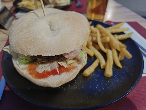 Read moreNos desplazamos con idea de disfrutar de una de sus hamburguesas. No tuvimos suerte con el servicio de cocina ese día. Carne totalmente cruda (y no es cuestión que las quisiéramos muy hechas. Simplemente al punto) El camarero de la terraza (encantador por cierto) al ver que no las comíamos se acercó y al verlas nos ofreció que nos las pasasen un poco más (genial) Volvieron totalmente deconstruidas (hasta ahí pudimos entenderlo) requemadas por abajo y el resto seguía totalmente crudo. En definitiva cenamos solo las patatas (buenas por cierto) y nuestro perro se deleitó con el resto. Nos planteamos probar las croquetas de secreto pero al final nos echamos para atrás. Quizás si volvemos otra vez (aunque sinceramente no creo) intentaremos esa opción. PD Se nos olvidó fotografiar las hamburguesas partidas para que pudiese apreciarse como...