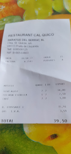Hoy hemos dado una vuelta por Perafita, y hemos comprado las famosas cocas de vidre, las de chocolate y las de crema, buenísimasss, demasiado. El único problema es que no sabíamos donde ir a comer, así que hemos decidido ir a la aventura, la cuál nos ha llevado al restaurante Cal Quico, situado en Prats de Lluçanes, crta. St. Quirze s/n., un lugar cerca de la carretera, con amplio parking , incluso hay camiones, y ya se sabe.. ... No era porque sí, entramos y nos buscan una mesa, la verdad es que sin reserva tienes pocas posibilidades de encontrar sitio, sobretodo en fin de semana, así nos lo aconsejan, hemos tenido algo de suerte. En seguida nos traen la carta del menú, tienes 6 primeros y 9 segundos y puedes pedir caracoles, eso si, con suplemento. De primero pedimos sopa de melón, Mmmmm, excelente. De segundo butifarra con judías, en su punto, y las judías tiernas. Trucha, tierna y exquisita, por poner una pega, un poquito de más salsa de romesco hubiera bordado el 10, pero sólo es una pequeña pega, también podíamos haber pedido más. De postre pastel de pera y yogurt natural de la poblacion de Cercs. El lugar es bastante nuevo o está reformado, tienen una zona de terraza con vistas y da la sensacion que también realizan bodas o fiestas. En definitiva, para no saber dónde ir, hemos encontrado un buen lugar, os lo recomiendo y si os va bien me dais a seguir y así os informo de...