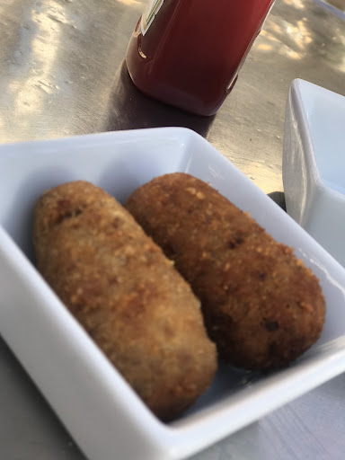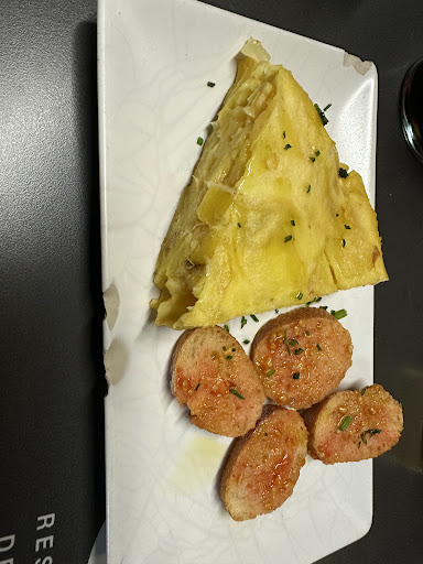 Read moreEl cambrer es el millor que ens vam trobar. De les 4 tapes que vam demanar, els calamars, passats de cocció, sosos, pocs i cars. Els fingers, pocs, massa fregits i sense cap gràcia. Els musclos, pocs, secs i sense gust ni ells ni " la salsa de brunoise" que no era cap salsa, era un picat "brunoise" amb oli, res més. Les patates braves, molt bén fregides pero sense sal. Les salses eren bones. Una pena que unes tapes que podrien estar genials, no van estar a l'alçada. El cambrer va dir que no eren gaire grans, i efectivament, però poca quantitat i a més fetes sense carinyo, tot sec (menys les patates) i sense gust i pagar 30 € per 4 tapes i 2 copes de clara??? Una i no més. Llàstima que la cuina no ha estat a l'alçada del tracte dels cambrers. Una mica més d'atenció i carinyo per part de la cuina i tot hagués...