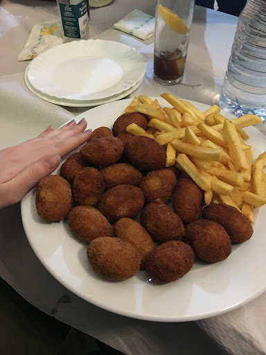 Si eres de buen comer este es tu sitio ideal para comer, tapas gigantes y muy buenas. Precio asequible, pedimos media ración de croquetas y nos pusieron alrededor de 20 croquetas con guarnición de patatas! Increíble siendo solo media ración. Pedimos media de gambas a la plancha y nos llenaron un plato entero a rebosar de gambas, además estaban muy buenas. Yo me pedí media ración de jamón asado con guarnición de patatas y me pusieron tanto jamón que tuvieron que traerme un plato aparte para poner las patatas, si eres de buen comer y comes en grandes cantidades tú o tus amigos este es tu sitio! NUNCA HABÍA COMIDO TANTO EN MI VIDA!! 100%...