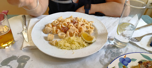 Camareros exquisitos en el trato. Pedimos calamares, chuletón de cerdo y bacalao gratinado. Todo exquisito, muy buen sabor, magnífica presentación de los platos y guarnición de verdura bien especiada. Los platos no tardaron mucho en ser servidos y los sirven todos a la vez.