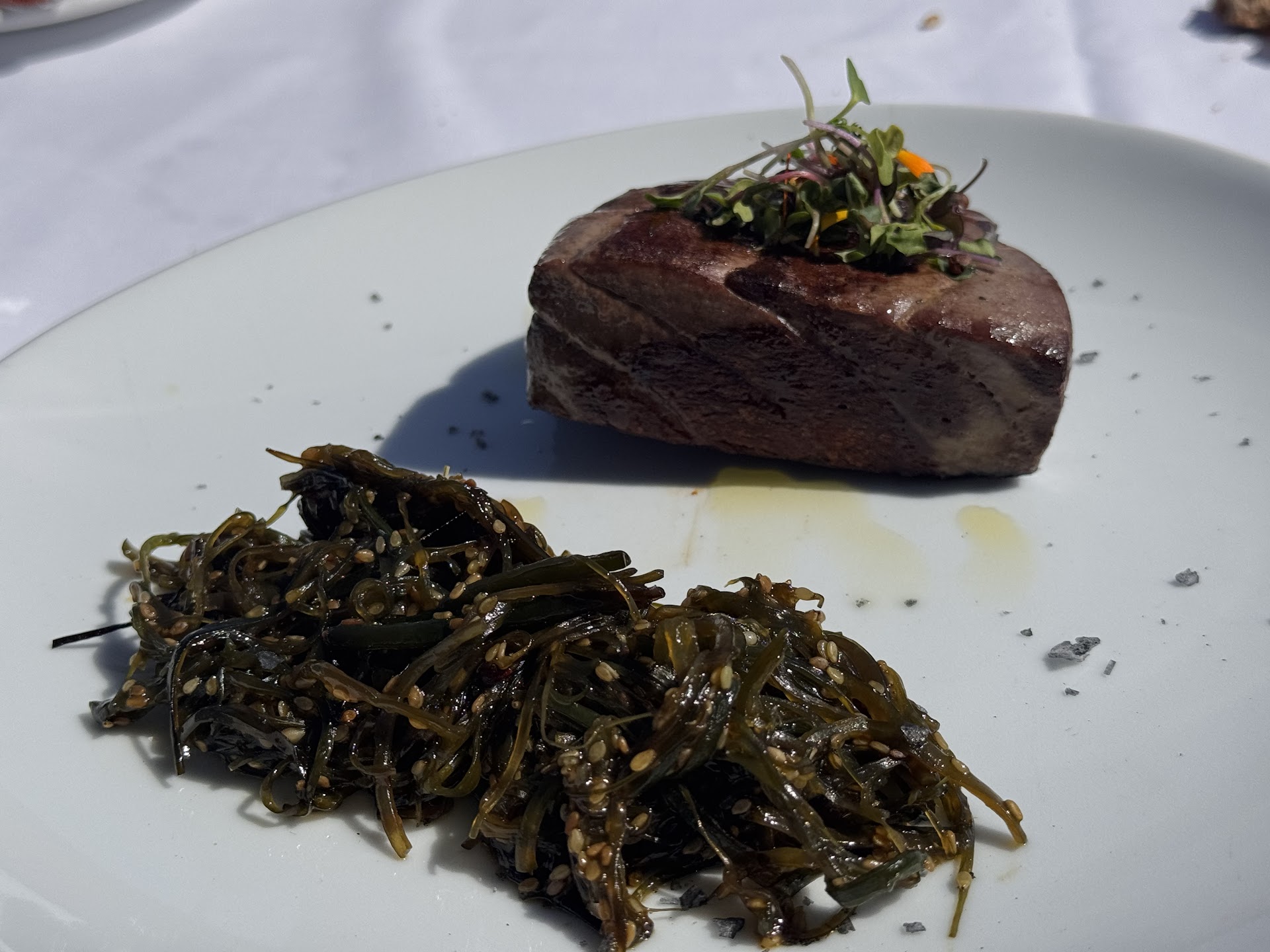 Volvemos y volvemos y siempre disfrutamos en este sitio. Ensalada 🥗 de muy buen tamaño y muy rica. También pedimos la caldereta de rape, y es espectacular. Sabor increíble, muy buen tamaño y el pescado...