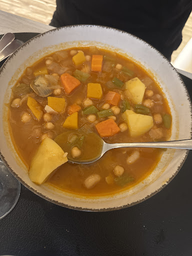 La comida muy buena. Es casera, llega caliente a la mesa y tiene un precio justo por su calidad. En este aspecto, la chica se interesó en todo momento por que estuviéramos cómodos y disfrutáramos los platos, haciendo incluso recomendaciones de platos.