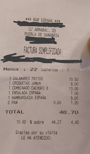 Read moreAyer por la noche cenamos tres adultos y dos niños. El servicio de Rubén y sus compañer@s fue fantástico. Muy amables y atentos, siempre con una sonrisa en la cara. Cenamos pulpo con patatas (riquísimo aunque la ración nos resultó escasa al precio que pagamos -17 EUR-), croquetas (16 unidades = 2 raciones, deliciosas), ensalada España (con lechuga, rulos de queso de cabra, cebolla frita, muy buena también aunque les pedimos a Rubén y sus compañeros un bote de crema balsámica de módena para darle un toque de más cuerpo, de más fuerza), un mollete de jamón ibérico, tomate y rulo de queso de cabra (espectacular), un mollete de bacon y queso (sabroso y que se deshacía en la boca), 2 Nesteas, 1 botella de agua grande, pan (de pueblo, rico rico) y 4 helados. TODO RIQUÍSIMO!!! Y encima, pagamos poco más de 60 EUR. Muchas gracias, Rubén y resto de servicio por hacernos sentir tan agusto durante la cena de ayer. Hoy para comer vamos a repetir, ya hemos hecho reserva. Con eso queda dicho todo. 100% RECOMENDABLE si visitas o paras en Puebla de Sanabria. Ah! Y con parking espacioso y gratuito a...