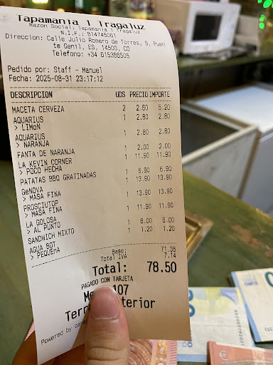 En toda esa diferencia que se lleva el restaurante espero que no incluyan la atención al cliente, que es nefasta, el camarero rapado de tatuajes trabaja sin ganas, llega a nuestra mesa y nos sirve los cubiertos y los platos sin repartirlos, la bebida sin repartirla. Al cabo de un rato, llegó con un sándwich que pedimos un amigo y yo a medias, preguntó para quien era, le respondí que era para nosotros dos y lo soltó en la mesa con fuerza y con desgana. Después al pedir la cuenta, el mismo camarero llegó por detrás nuestra diciendo “Vamooooos” en voz alta, metiendo prisa. No es la primera vez que tengo una mala experiencia con este trabajador del Tapamania. La cuenta no puede ser por separado, puedo entender que no sea por separado cuando la mesa es de diez personas, pero éramos cuatro personas que habíamos pedido un refresco y un plato cada uno y uno para el centro.