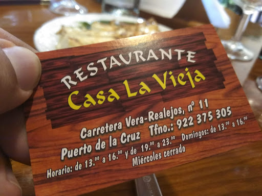 Wir waren mit unserer Spanischklasse samt unser Lehrerin im Casa la Vieja zum Essen. Es war ein Tisch mit 15 Personen und wir hatten vorher natürlich reserviert. Der Tisch war schon für uns vorbereitet, was heißt vorbereitet.....er war für unsere Gruppe zusammengeschoben worden. Ansonsten war nichts drauf. Wie übrigens im restlichen Raum auch. Nackte Holztische, nackte unbequeme Holzstühle, nackte Wände mit nichts dran, fürchterlich grelles Neonlicht von der Decke. Ungemütlicher für ein Restaurant ging es eigentlich nicht. Deswegen für das Ambiente auch nur einen Punkt. Der Service war die ganze Zeit über fleißig, freundlich und immer da wenn etwas gewünscht wurde. Das änderte sich auch nicht als das kleine Lokal immer voller wurde und bald bis auf den letzten Tisch belegt war. Nun zum Essen. Wir hatten uns vorher in der Schule die Karte angesehen und uns darauf geeinigt was wir für alle bestellen wollen. Das war recht simpel und wir orderten dann für alle je 4 Portionen Queso Asado ( der war sehr lecker), 4 x zweierlei mit Huhn und Spinat gefüllte Croquettas ( meine Spinatcroquette war leider total versalzen) und 4 x Ensaladilla Rusa ( war sehr kalt, unheimlich fest und sehr geschmacksneutral). Als Plato Principal kamen dann noch einmal jeweils 4 x die Spieße vom Rinderfilet mit Papas fritas ( die waren, wenn auch ziemlich durchgebraten, lecker) und 4 x das Rinderfilet mit karamelisierten Äpfeln und Zwiebeln (das bestellten wir extra medio con sangre damit es auf keinen Fall durch gebraten wurde. Was kam war natürlich total durchgebraten. Schade! Das Fleisch war trotzdem zart und soweit ok) Auch dazu kamen Papas Fritas und eine Tomate aus dem Ofen. Also alles in allem war für mich das Essen so ein Wechselbad der Gefühle. Nichts desto trotz hat unsere Gruppe einen schönen, geselligen Nachmittag im Casa la...