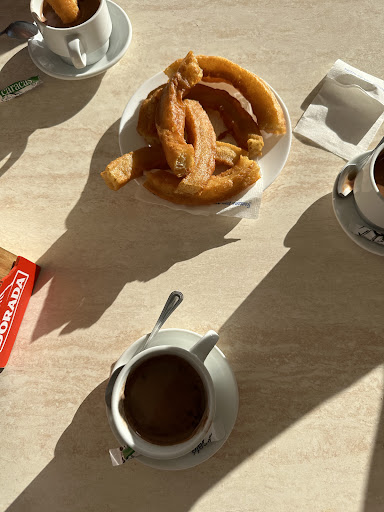 Read moreTake care, they charge you depending on if you are a local or a foreigner. Fisrt day we asked for two milk coffee and one "churros", which we were told It was 2,5 euros. All included, it was 5,6 euros, not at all cheap, but well, ok. A few days later we were served by another waitress, we asked for the same, and we were charged 6 euros. I asked how much was a coffee, she answered me "two euros"... Make yourself your numbers. There is something which doesn't fit.