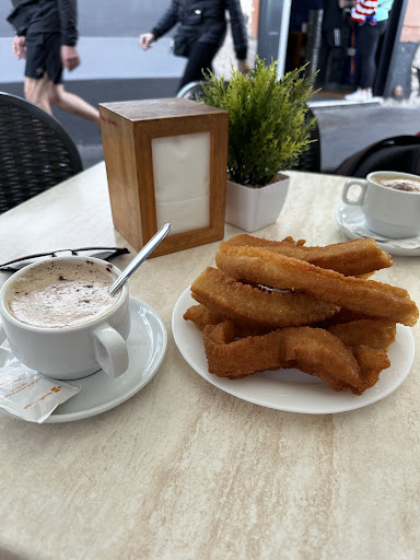 I really liked this place mostly because of that you can have churros here at any time. Today we discovered that they are scamming their customers which is really disappointing. First of all you never know if the churros will cost 1,5€ or 2€ (I was already asked both prices for the same amount of churros). Also offered nutella is not really nutella. Second thing is their “sangria” - it wasn’t even a sangria, it was some cheap wine, rum, water and sugar..you can imagine how disgusting it was and they asked for this 5€..the most expensive sangria which even wasn’t sangria in my life..yuck Their menu also have prices deleted/“blured” so you don’t know what price will the waiter ask you..