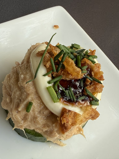 Read moreWhat can I say about los chicos de la barbacoa apart from absolutely unreal. Table reserved in under 30mins (although I didnât acknowledge this) cheeky little cucumber tuna bbq syrup combo, homemade slaw, BBQ bread & homemade butter. I had the pulled rib burger (pickled cucumbers unreal btw) the wife had the crunchy chicken burger (it looked really good proper crunchy too) fries dusted in a good mix of seasoning along with cobs for the boy (glazed in a bbq butter along with a dusted seasoning) devoured the lot. Washed down with a local white wine, a bottle of water & 2 estrella. Unreal service if youâre in the Puerto De La Cruz area (Tenerife) be sure to check this place out youâll not be disappointed. 20/10