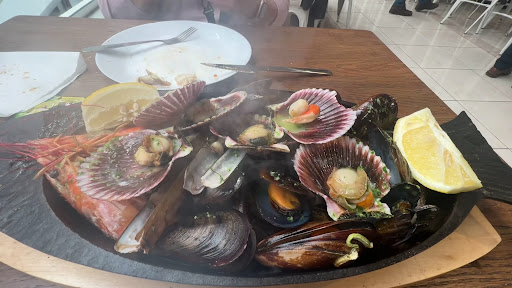 Read moreENGAÑADO Y DEFRAUDADO. Hemos ido a comer una “Mariscada” a este establecimiento y lo que más nos gustó ha sido la botella de vino blanco de Rueda. Con esto lo digo todo. La supuesta “Mariscada” se suponía que consistía en 1 Langosta, , 3 Gambones, 10 Mejillones pequeños, 4 Navajas pequeñas y Lapas, pero ni la Langosta ni las lapas aparecieron por allí. Cuando he reclamado el porqué de estas faltas de marisco, me ha dicho el responsable del establecimiento que no había y que por la langosta nos había puesto 2 zamburiñas más…..👏👏👏👏. Un cambio maravilloso. Igual cuesta una langosta que una zamburiña. Y gracias que he preguntado, que ni siquiera te lo dicen que faltan esos mariscos. Respecto a lo que sí ha venido…..Mejillones súper pasados. Hasta el punto de estar secos y tiesos. Navajas y Zamburiñas con más tierra que la que hay en la playa. Por cierto, también te engañan con las zamburiñas. SON VIEIRAS DEL PACIFICO. Y los gambones también muy pasados de plancha. Te lo sirven en una especie de pez de acero o fundición que hace que el calor te pase del punto todo el marisco. En definitiva…..quien quiera ir que vaya, pero mi experiencia ha sido súper decepcionante. Por cierto, también pedimos una ración de Pulpo y este si estaba menos hecho. No estaba mal, pero algo chicloso....