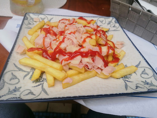Read moreEl menú del día no tenían a las 2 la mitad de las cosas que ofrecen. Aunque sea barato no merece la pena. Pides la carta y tampoco tienen ciertas cosas. El solomillo de cerdo estaba bien cocinado y rico. Lo que más nos llamó la atención fue poner aceite de orujo de oliva en una botella de aceite oliva “virgen extra” para el aderezo de ensaladas. Se lo comentamos a la camarera. Parece que el negocio está más enfocado al turista extranjero que el nacional.