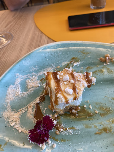 Read moreLugar acogedor, para mi gusto demasiado iluminado. La atención es de 5 sobre 5. La comida en algunos aspectos sorprendente y rompedora. El entrante de gambas en gabardina con un giro creativo inesperado me sorprendió muy gratamente. A pesar de la salsa agridulce como acompañamiento. Pero me llamó la atención que un pollo al currí fuera dulce lo cual anestesia la paleta gustativa que éste plato tiene para ofrecer. La ensalada de manzana, nueces y queso Fetta en mi opinión debería de traer la salsa aparte pero estaba muy bien de combinación de sabores y texturas. La carta de postres no estaba completa ( no quedaban los típicos dulces marroquíes ) tuve que consolarme con un " crep " de masa filo relleno como un baklabá acompañado de una bola de helado y crema pastelera. Fue un consuelo muy...