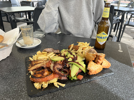 Read moreWhile looking for a good place to eat in Puerto del Rosario in the afternoon we came across this bar and were truly surprised. The stuff was very kind and talkative and offered us one big shared dish custom-prepared for us given my wife’s preferences differ from mine in regard to seafood. As we got to know our waitress comes from Galicia which made “mariscos” even more mouth-watering. Everything was served on traditional slate tray, of course. Just take a look at the photo...