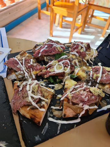 Read more¡¡Todo un descubrimiento en Puerto del Rosario!! Estábamos de paso y sin comer un fin de semana en la capital, y sin esperarlo descubrimos esta pizzería abierta después de las 4 y con muy buenas opiniones, que corroboramos. La decoración es muy desenfadada, con un rollo chic y tropical que engancha y recuerda incluso a alguna serie de televisión 😁🏝 El personal es muy atento y amable, siempre pendiente de ti; te sirven un aperitivo muy rico durante la espera; lo mejor son las pizzas, puedes elegirlas de masa fina o gorda (elegimos la segunda) y están ESPECTACULARES: hemos probado muchas pizzerías en la isla, y desde luego colocamos esta entre las 4 mejores de Fuerteventura. Hay que probarlas, no se puede decir más.