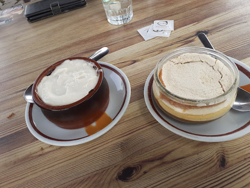 Cafetería con algunos platos elaborados. La comida no es mala, y el servicio fue muy rápido. Pedimos ensaladilla (deliciosa), huevos rotos (algo secos, pues las yemas estaban cuajadas, pero los chorizos que acompañaban estaban muy ricos), secreto en salsa con papas fritas (la carne estaba muy seca, demasiado para ser secreto, pero la salsa de queso estaba deliciosa), y de postre quesillo (muy rico, con nata; el único postre casero que tenían, pues lo demás era todo de Doña Laura); para beber: dos medios litros de vino blanco seco. El ambiente es algo ruidoso, reverbera mucho la estancia. El vino fue lo que nos pareció carísimo: 9€ el medio litro de vino blanco seco de la casa (de...