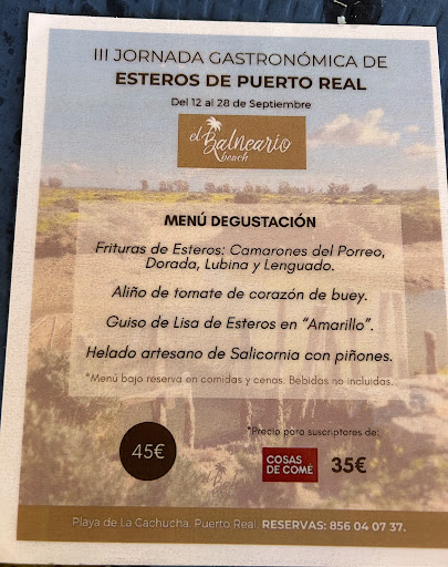 Read moreBuen servicio de camareros en comedor y barra. A destacar del menú la comida marroquí, muy bien elaborada y sabrosa. Postre marroquí muy buenos. Carrillada muy buena.Construcción modular en madera tipo chiringuito de playa. Emplazamiento muy bueno en plena playa urbana de La Cachucha. Tiene Terraza cubierta y practicable, cerramiento a base de cortina de vidrio, tiene Grandes vistas hacia la Bahía de Cádiz. Gran zona de aparcamiento público y gratuito cerca. A mejorar: Los platos de entrantes a base de embutido no es su fuerte, jamón de gama media/baja y en cantidad son excasos, solo destacar la morcilla. Los revueltos de gambas con poco marisco. Vino de la casa en torno a gama media/baja. El flan de turrón mejorable. Los aseos están demasiado centrados y metidos en el comedor, se vé que el diseñador del espacio de la empresa fabricante del módulo de madera no tuvo en cuenta este detalle. Existen expertos en esta materia en la misma localidad, pienso que se les pasaría pensar en ello ya que es una localidad con una población volcada casi exclusivamente a la construcción metálica...