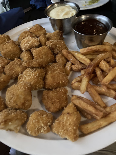 La comida: Nachos: plato abundante de nachos con queso fundido. Sencillo pero llena. Las guarniciones simples. El guacamole parecía puré de aguacate. Me extrañó que vinieran con mayonesa. Fingers o lagrimas de pollo: Apostaría que son los congelados del Mercadona. Muy hechos Pizza: son abundantes en ingredientes pero difícil de comer si no es con cuchillo y tenedor. La masa un poco quemada.
