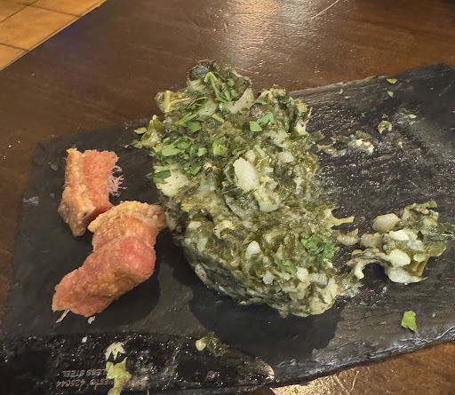Read moreEstoy acabando de cenar, y simplemente estoy flipando. Lugar frecuentado por gente joven igual que los trabajadores, hoy jueves es pintxopote en la zona, los bares crean una ruta para disfrutar de tapas y bocados de la zona… si tenéis tiempo, sentaros y disfrutar de las creaciones del cheff y de la gran atención del chico de la barra. De verdad merece la pena! Yo me he relajado, para abrir boca he pedido la tapa del jueves, una hamburguesa jugosa de pollo con tófona, que ya notas que el sitio apunta maneras…y con la comida y la buena atención… me he dicho, oye quédate y déjate llevar…así lo he hecho he pedido un “Roll de Carrilleras al vino con Pico de Gallo y Lomo Ibérico” y he flipado literalmente, lluvia de sabores super bien combinados entre si..y me recomiendan tomar postre pero al no tener excesiva hambre me recomiendan mezclar los dos postres (un poquito de cada) recomendados las trufas artesanas de baileys y la torrija caramelizada crujiente con un poco de quenelle de mandarina…no digo nada más…venir y juzgar vosotros mismos!...