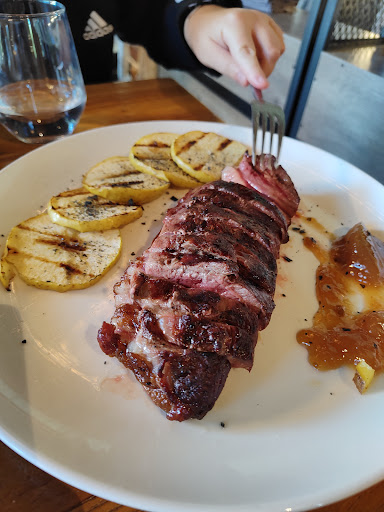 Al lío: Comida/calidad (3,7): La comida está buena, la carne es de buena calidad. Pedimos butifarra, pato, y huevos rotos con jamón. Los platos llevaban acompañamiento y las raciones, en el caso del pato, eran grandes, en la butifarra normal, y en los huevos rotos normal. Por cierto, el postre muy bueno. Precio (3,5) : me lo esperaba más caro por estar cerca de Puigcerdà, pero son precios muy decentes. Eso sí, las bebidas (refrescos) son de 200ml, hoy en día ridículo, pero a precio de refresco grande de 350ml. Instalaciones (4,5): mesas principalmente dentro, ya que en la puerta hay una zona para tomar algo mientras esperas. La decoración es tipo rústico moderno, bonito en general. Está pegado a un camping y se ve la piscina desde la cristalera, pero no es para uso de los comensales. Hay ventiladores, no vi aire acondicionado, pero la verdad se estaba bien pese a ser agosto. Hay que reservar en fin de semana porque se puede llenar, aunque se llena sobre las 15h y no antes. Servicio (3,0): muy amables y todo correcto. Lo único que me deja perplejo es que habiendo gente que llega un rato antes de su reserva, no le dejan ir a sentarse...incluso si están todos los comensales ya ahí. Y más cuando el restaurante está medio vacío todavía...no acabo de entender esta política de hacer esperar a la gente cuando no hace falta y a horas donde todo el personal está disponible (entre las 14-15h).