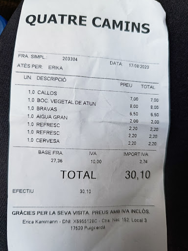Read morePeligro de intoxicación y de que si les dices educadamente que la lechuga está podrida, venga a echarte la bronca de malas maneras. Por cierto el delantal de la cocinera àrab tenía hasta hongos, repugnante y como nos hemos quejado clavada al canto, un bocata vegetal de atún asqueroso 8€ y unas bravas congeladas 6,5€ ni en la ramblas, mi teoría del síndrome del guiri en la hostelería de Catalunya, sin duda llega hasta Puigcerdà. Para denunciarlos. 08/09 respuesta, veo que te hace mucha gracia poner en peligro la salud de tus clientes, devolvimos la ensalada. No mientas y deja de engañar a la gente, estafador. No se si era árabe o mora pero guarra seguro porque colgaban bolets del delantal, que lastima que en el pirineo haya estafadores de guiris...