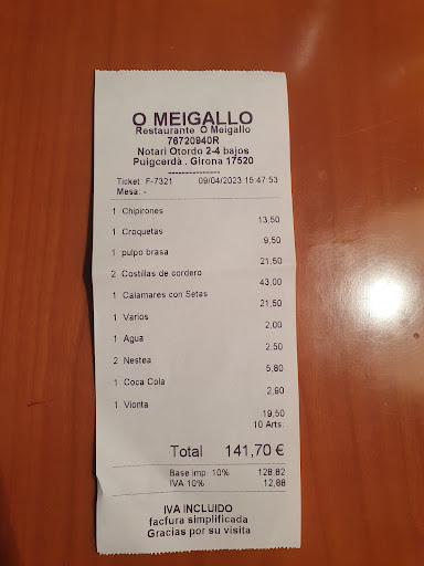 Read moreMixed feelings about O'Meigallo, mainly due the big difference between starters and mains. On one side the starters were small, untasty and crazy expensive. E.g. I was dying for a good octopus a feria and, being this a Galician restaurant, I was expecting to get a good ration of excellent octopus (especially considering it is a 18€ dish)... Unfortunately, the octopus was extremely disappointing: small tapa of thin cuts of octopus with no taste. Small squids were not impressive either and croquettes were only average. Still, mains were very good: beaf tenderloin, house cod, braised calamari... Excellent all of them. It was still overpriced, but at least the last course was worth it!