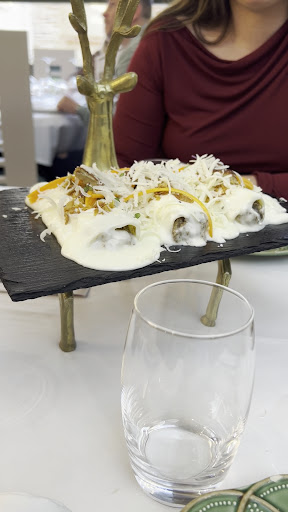 Read moreExcepcional. Fuimos cuatro comensales y nos costó elegir entre tal amplia variedad de platos. Finalmente nos decantamos por el crujiente de oreja de cochinillo con puré de patatas chips, gyozas de venao y panipuris rellenos de salmorejo de mango y kimchi (primera foto en la que no solo la presentación ya nos pareció sorprendente sino que los sabores eran exquisitos); canelones de venao, boletus, trufa, foie y virutas de queso manchego (segunda foto: otra presentación impecable en la que a pesar de que la carta indica que incluye 3 canelones, al ser cuatro comensales nos ofrecieron la posibilidad de que fuesen cuatro. Además nos rayaron la trufa y el queso manchego en la mesa) ;el volcán de mi-cuit de pato con corazón de salmón marinado (tercera foto; que acompañaban con un recipiente de panecillos como se muestra en la sexta foto); pluma ibérica con timbal de patatas panaderas, huevo para romper y salmón (cuarta foto: carne en su punto, jugosa y sabor increíble); de postre elegimos la cheescake manchega (quinta foto y segundo vídeo: sabor increíble y textura perfecta acompañado por una bola de helado de frutos del bosque. Incluyo también una foto del aperitivo que nos sirvieron al pedir las bebidas y del café. Cabe añadir que el servicio fue muy atento y profesional en todo momento, lo que hizo que la experiencia fuese de lo más agradable. Lo único que no nos gustó fue que el pan de semillas que escogimos (pues te permiten escoger bollo de pan o rebanada gruesa se pan de semillas) estaba un poco duro. En conclusión, salimos muy satisfechos y lo...