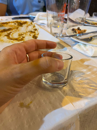 Read moreCalidad de la comida acorde a su precio aunque la cantidad deja mucho que desear. Actitud de los camareros jóvenes agradable. El punto negativo fue al pedir la cuenta, pedimos unos chupitos digestivos. Ante el rostro serio de la persona que nos atendió dijimos que lo pagábamos. Los chupitos lo trajo otro camarero sin ticket de la cuantía y al ver el chupito (muestro foto) pensábamos que sería una invitación al ser el típico chupito de cortesía que ponen muchos restaurantes. Cuando he pagado por un chupito te lo ponen en una copita bien servido. Me levanto a cambiar un billete para dejar propina y al ver al camarero que le pedimos el chupito, le pregunté que si debiamos algo y me dijo que los 5 chupitos eran 10 euros (a 2€ un chupito en el típico mini vaso sin hielo!). Saqué la tarjeta, guardé la propina que ibamos a dejar que precisamente iban a rondar los 7-8 euros y pagué. Ni me dieron ticket de la cuenta ni nada y la verdad que antes la incredulidad ni lo pedí. Quiero dejar constancia que me parece totalmente lícito que si le pido el chupito lo cobre aunque ya la cortesia esté "sobrevalorada" y al menos que lo sirva en condiciones. Si cobras 2€ el chupito, sírvelo en condiciones, de lo contrario deja mucho que desear. Lo que es ilícito que te cobren el servicio de pan y pico si NO lo has pedido y además NO viene cuantificada en la carta. En fin, detalles feos que...