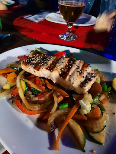 Read moreOtro restaurante de los de calidad en El Portil de Huelva. Se encuentra junto a la Laguna de El Portil. Es muy amplio con una zona techada interior y otra exterior donde las mesas se distribuyen entre una especie de cabaña gigante de bambú y en un jardín. Todo es muy espacioso y cómodo. Mezcla de cocina tradicional andaluza e internacional. Especializado en carnes y pescados a la parrilla. Presa y secreto ibérico de bellota, entrecot de vaca madurada 60 dias, tomahawk, hamburguesas y pizzas en horno de leñs. Pero con un toque añadido de calidad en el producto, las cantidades y la presentación. El tartar de salmón y aguacate es estupendo. La combinacion del dulce y el salado de la pastela marroquí con pollo y almendras una delicia sorprendente. El rejo de pulpo a la brasa en su punto y sabroso. Todo muy bien elaborado y de mucha calidad. Incluidos sus postres foundant de chocolate con coco o el carpaccio de piña. Y como he repito en otras ocasiones: todo ello bien regado con un vino del Condado de Huelva. Y en especial el Barredero o un La Tecla. El servicio muy bueno y voluntarioso pues en ocasiones se ve superado por la clientela. Incorporar a algún refuerzo no estaría demás. Sus precios muy buenos nada elevados respecto a la calidad del restaurante. Otro más a repetir, jajaja. P.D. disculpad la calidad de las fotos, había poca luz...