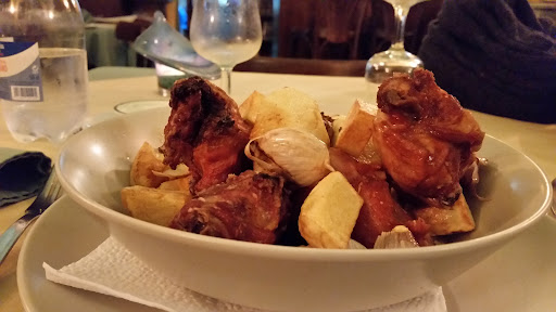 I don't know how this restaurant can get a 4.2 star in reviews. We came in and broken furniture is offered to sit on, I changed my seat with an empty table and nobody cared. Then we ordered a bottle of rose wine and without any consult we got a bottle of red, because the rose was not available. Then we ordered food, entrees, "tostades" with tomato and cheese and grilled local cheese with green mojo, what we got was some soft bake-off bread with a cuncky ketchup and cheese, shortly grilled and a rubbery cheese in a layer of oil with some green gooey stuff, both not very attractive looking or tasty. For main my girlfriend ordered skewers with pork and beef and they were good looking and tasting. I ordered a steak with "orange" sauce. On my plate came a almost raw (I like it raw/medium, but this was barley cooked) and a yellowish overly sweet sauce with a small hint of oranges. Overall, not a...