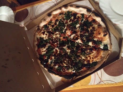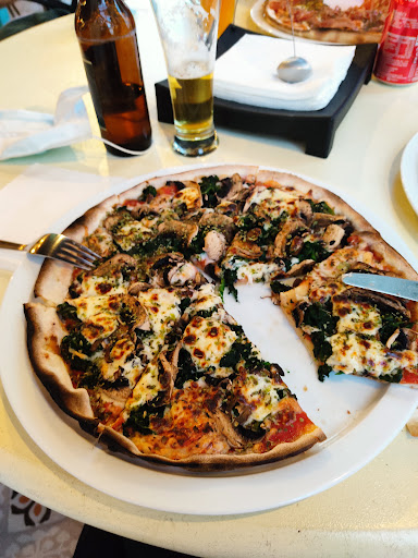 Read moreUn lugar muy curioso, decorado con mimo y amueblado de forma ecléctica, con libros en todos los idiomas que se te ocurra (el lugar parece popular entre los extranjeros locales) lo mismo caes en un sofá que en una silla más o menos curiosa...la atención es muy profesional pero poco cercana, y vamos a lo esencial, la comida: solo tienen pizzas, ni siquiera postres, entrantes o café perooooo...¡Dios mío que pizzas!, se salen del tópico de siempre y apuestan por combinar ingredientes locales con ingredientes internacionales de buena calidad creando interpretaciones de clásicos o directamente probando alguna fantasía muy curiosa como rúcula con rulo de cabra y manzana... vayan con hambre, las pizzas son grandes y cargadas, muy bien horneadas y aderezadas, todas las pizzas valen 9€, pero la relación calidad precio es sencillamente excepcional...un sitio muy recomendable incluso si no te...