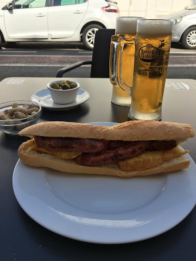 Read moreLa comida bien, pero parece que cada vez mas te cobran hasta por “ponerte azucar con el cafe”. Me dice que en plato cuesta lo mismo que en bocadillo y era 1€ mas, ademas botella grande de agua 0.50€ mas y carajillo de maria 0.50€ mas . En conclusion 9€ el almuezo que ha sido un contramuslo y patatas junto a una rebanada de pan. Tomar la conclusion vosotros mismos. Ya no...