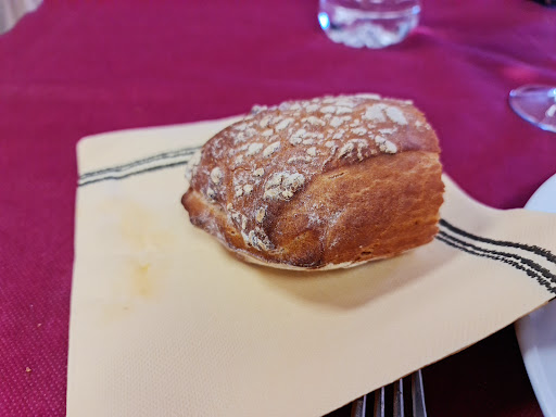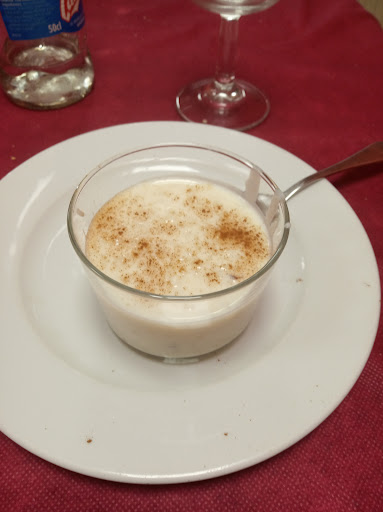 En cuanto a la comida, toda estaba muy buena y abundante... Bueno... Casi todo... Yo me pedí Risotto con champiñones del menú de FS y parece se que justo ese es el que tiene un emplatado muy bonito pero con poca abundancia... Además, que no era risotto, era un arroz blanco superpasado y como si fuera una sopa... Aquello no tenía nada de queso ni de mantequilla... ESENCIAL si quieres que un risotto sea un risotto y no un arroz normalito tirando a malo. Por el resto bien, de segundo pedi codillo y estaba bien hecho, con guarnición de patatas fritas. Y el resto de comensales que comimos en la mesa pidieron berenjenas rellenas, potaje, entremeses... Y todo bien y correcto en cuanto a cantidades De ahí que ponga un 4 en la comida y no un 5.