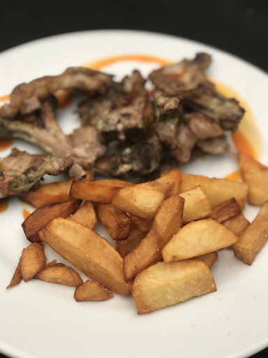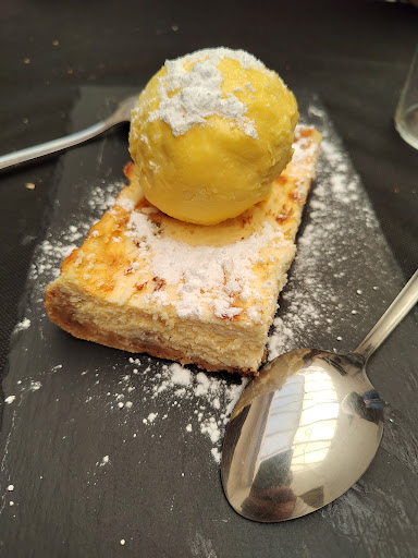 Read moreEscogimos este restaurante por que pasábamos cerca y sus reseñas nos parecieron muy buenas. Nos pusieron un entrante, en unas rebanadas de pan "untaron" tortilla de patatas como sin acabar de cocer pareció. Muy bueno. De 1o compartimos pulpo. Servido en una teja de pizarra, tres patas enteras y con puré trufado y pimentón. Muy bueno. De 2o, mi pareja pidió chuletillas de cordero, acompañadas con patatas fritas, muy correcto también. Yo pedí Rabo de Toro. Excelente, muy, muy bueno, pero en ese plato me sobraban las patatas fritas aunque también me las comí. Pero con ese guiso tan excelente creo que deberían servirlo con otro tipo de acompañamiento. Las patatas fritas "molestaban" a la presentación del plato. (Para mi gusto). De postre, tarta de queso hecha en casa. Muy buena. Dos copas de vino tinto, bastante bueno y una botella de agua. El local correcto, creo que por la cocina que se sirve, la ubicación no les acompaña. La quisquillada sería que sirven demasiada cantidad, salimos llenísimos. Pagamos 67€....