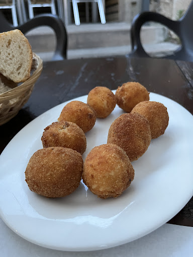 We first sat down at a table which seems to have been reserved (not clearly indicated) we were asked in a not really friendly way to go sit somewhere else. All tables were occupied so we choose to sit and eat at a lower uncomfortable lounge table. I was dissapointed to see some locals getting a proper dinner table assigned 1 minute later for just having some drinks while we had to eat at a table for drinks only… anyway that was our choice. We chose the croquettas de jamon as starter after reading some good comments, but the taste was very average, and half of them were really still cold inside. Further we chose the fish with asparagus, this was good, and also a hamburger, but that was really pretty tasteless, so in general I would mark this place as...